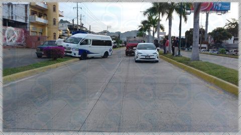El EquipoZihuatanejo, Gro., (Diciembre 17, 2018).- Una mujer herida y cuantiosos daños materiales es el saldo de una carambola vehicular que se registró en el bulevar Paseo de Zihuatanejo, a la altura de la llantera “Montaño”, suceso que movilizó a los cuerpos de rescate.De acuerdo a la información obtenida, fue a las 08 horas que José Alberto Rivera, conductor de una Chevrolet, tipo plataforma, de la empresa “Gas Express”, que transportaba varios cilindros de gas; se impactó por alcance contra la Toyota de la línea de transporte de Las Dos Costas, número 46, la cual circulaba de Zihuatanejo a Petatlán.La unidad del transporte público fue proyectada hacia un vehículo Toyota, blanco, con placas de Morelos, que conducía Benigno Núñez Gordillo, ex regidor de Desarrollo Rural en la pasada administración municipal de Zihuatanejo.La Chevrolet resultó con daños en el frente, la Toyota con daños en la parte trasera y el auto compacto con daños en la defensa trasera.Paramédicos de la Cruz Roja Mexicana atendieron a la señora Mirna González, de 53 años de edad, con domicilio en Puerto Mío, pero sus lesiones no fueron de consideración y no requirió que la trasladaran a un hospital.De este choque se hizo cargo el personal de la Delegación de Tránsito, por lo que remitieron los vehículos implicados al corralón para los trámites correspondientes.