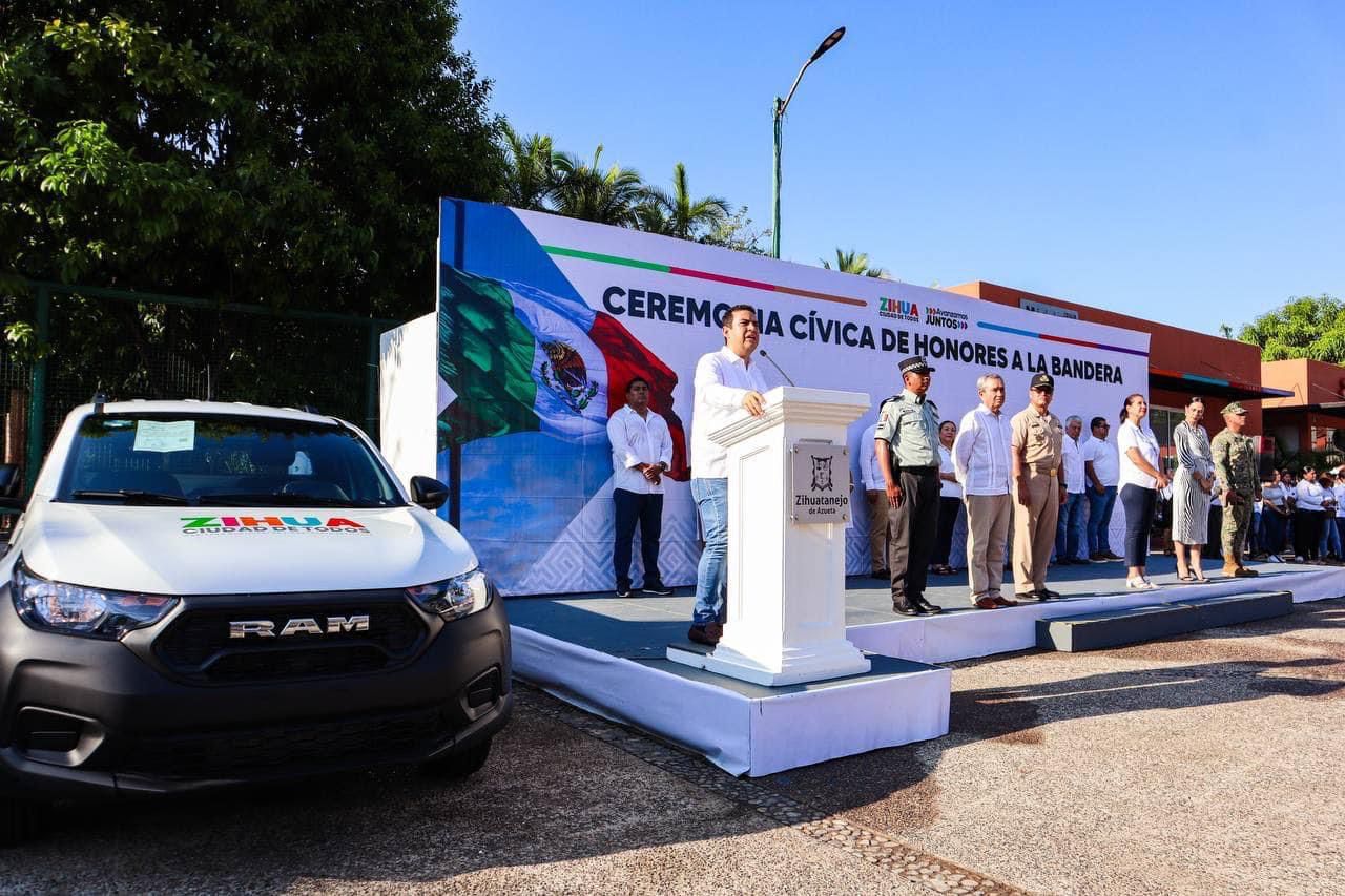Cabe mencionar que también en el marco de la ceremonia cívica de honores a la bandera, el presiente Jorge Sánchez Allec hizo entrega de tres nuevos vehículos a la Comisión de Agua Potable y Alcantarillado de Zihuatanejo (CAPAZ), con el objetivo de fortalecer el trabajo que realiza el organismo operador.