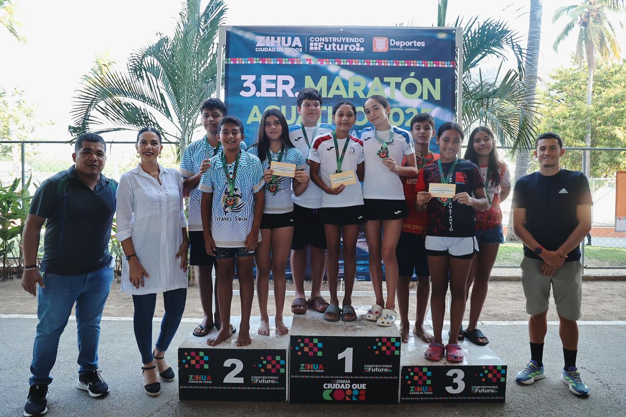De manera simultánea, en la pista de tartán “David Ocampo” se realizó una carrera atlética de relevos, en la que participaron estudiantes y clubes de atletismo de Zihuatanejo, fomentando la convivencia y el espíritu deportivo.