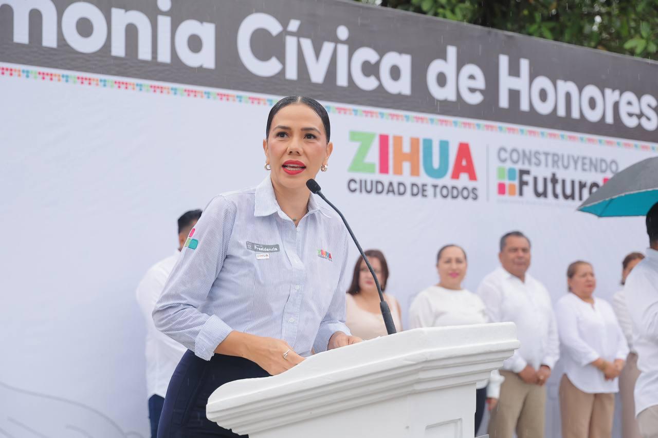 Zihuatanejo, Gro., (Octubre 6, 2025).- Al encabezar este lunes, junto con autoridades civiles y militares, la ceremonia cívica de honores a la bandera correspondiente al mes de octubre, la presidente Lizette Tapia Castro destacó que Zihuatanejo se ha posicionado como el único Pueblo Mágico del país en recibir el premio nivel Diamante otorgado por la Secretaría de Turismo del Gobierno Federal.